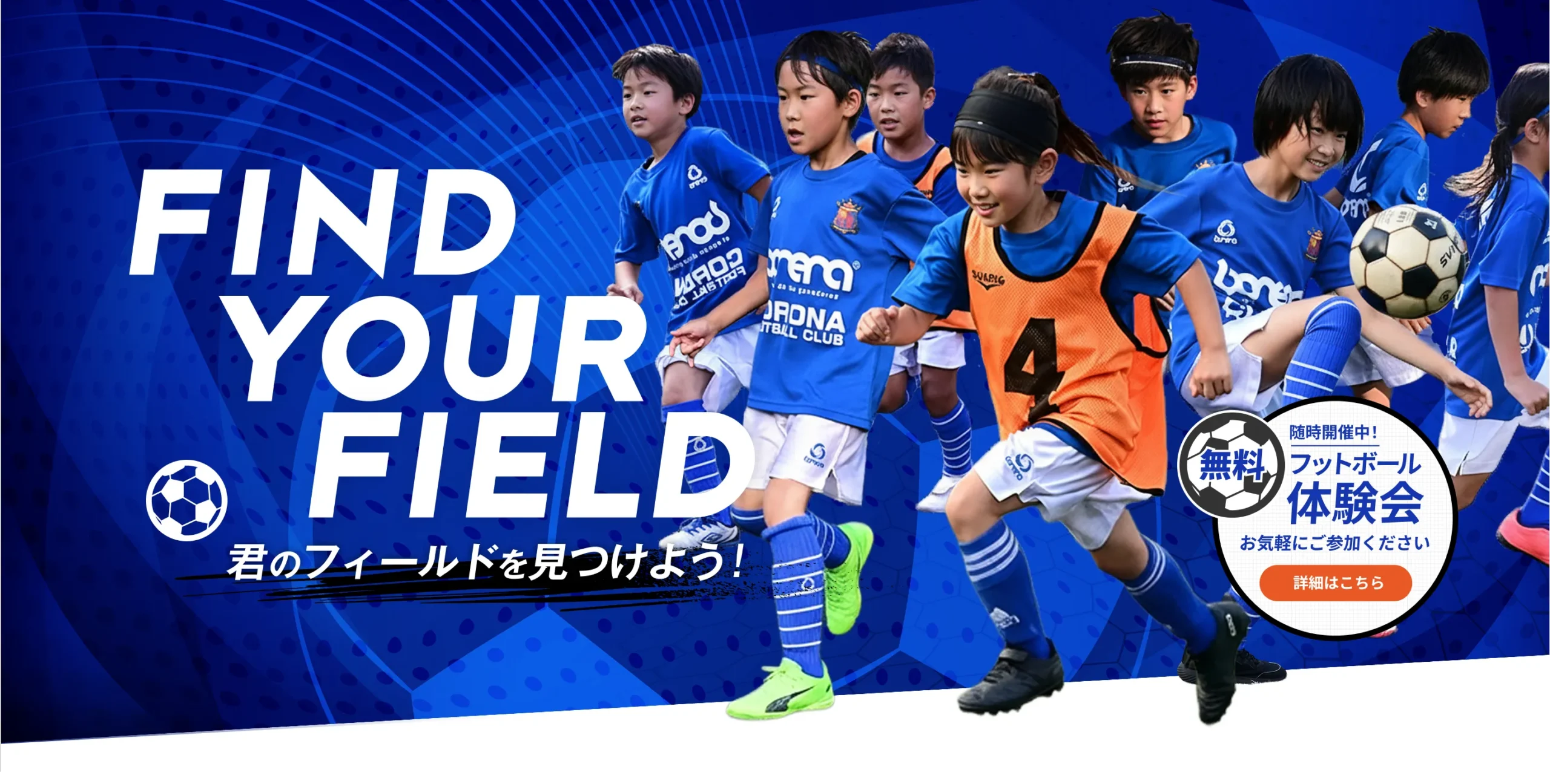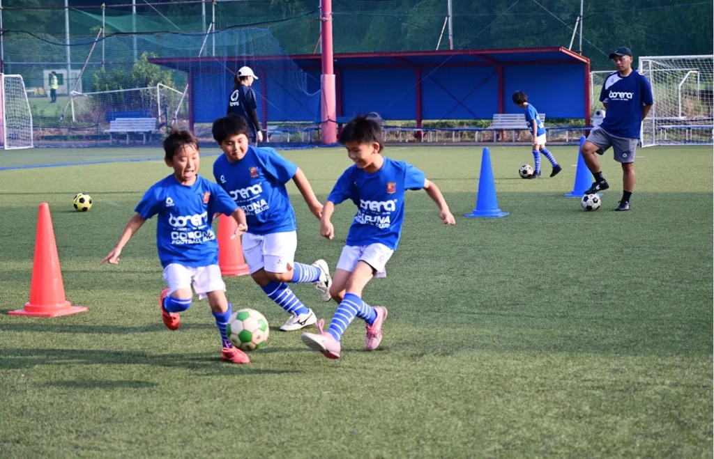 国際基準の人工芝コート3面完備の充実した環境で、年中のお子様から小学6年生まで一人ひとりのレベルに合わせた丁寧な指導を行います。