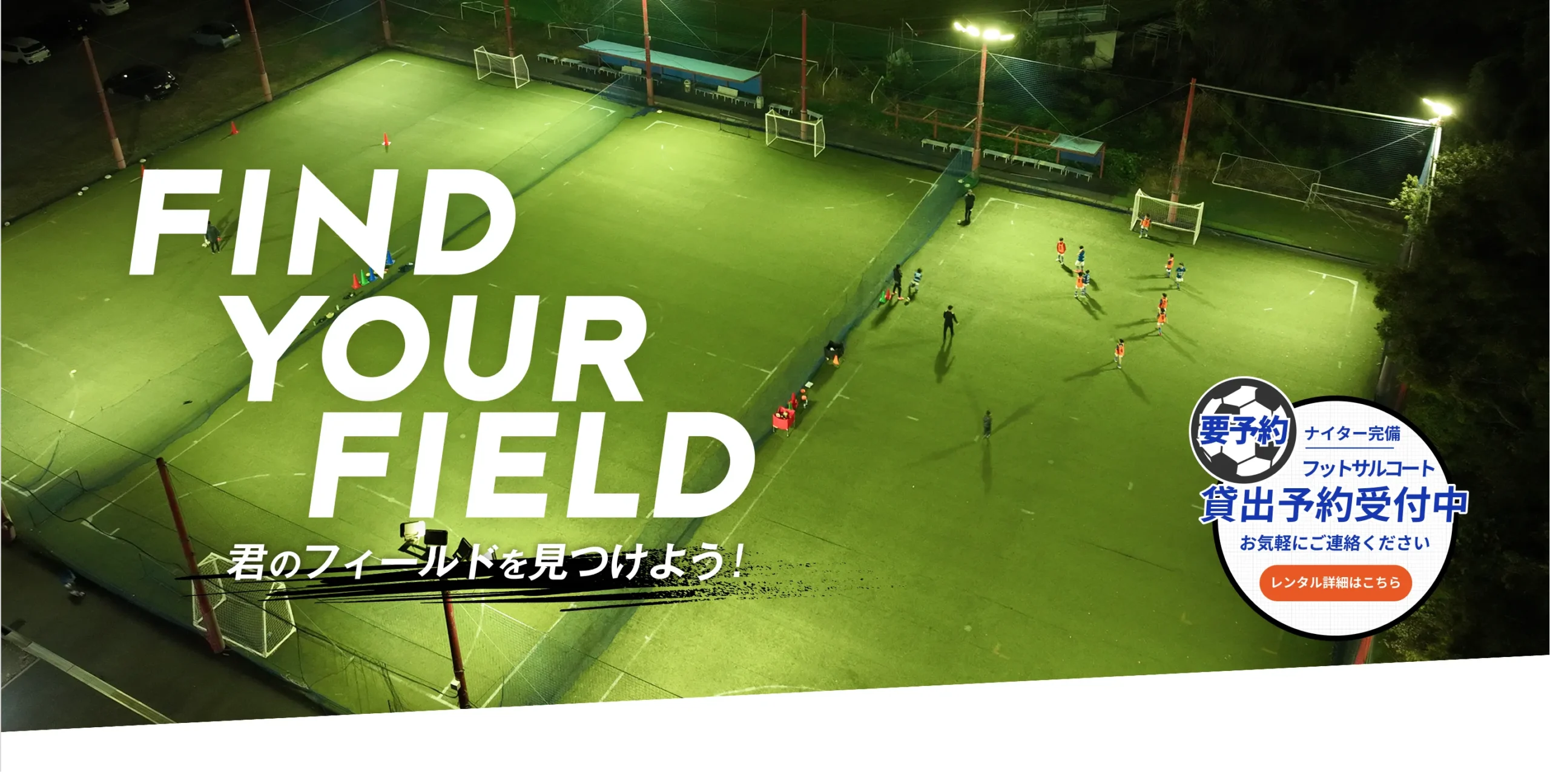ナイター完備の透水性人工芝で思いっきりフットサルを楽しもう!雨の日でも安心、コートサイドに大型サポーターシェルター2台設置を追加しました。駐車場 90台完備(無料)で、男女更衣室、シャワールームなども完備しています。